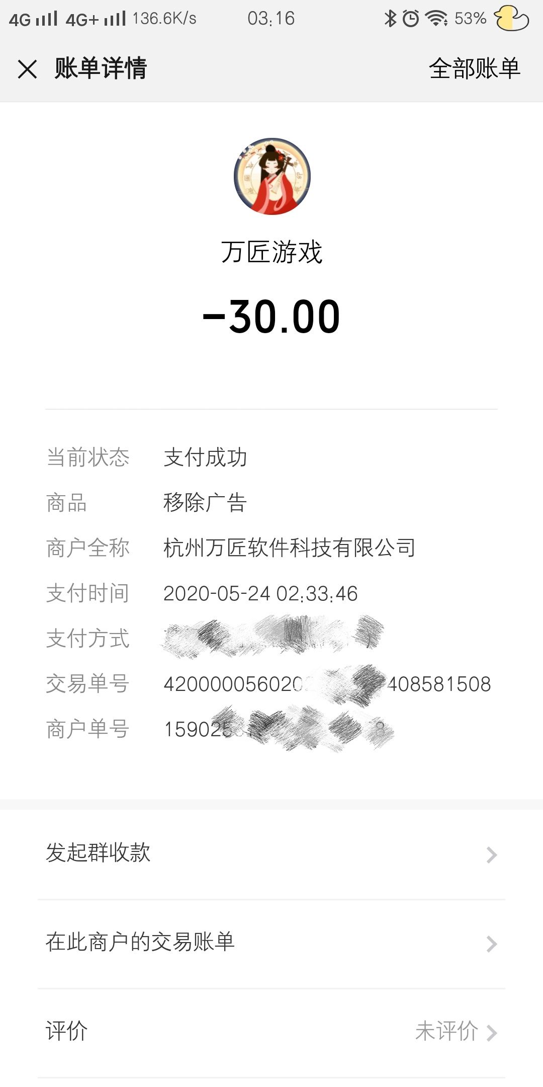 我都买了去除广告了,为什么一局结束后就又开始有广告了?难道30元就买一局没有广告吗?!!!
