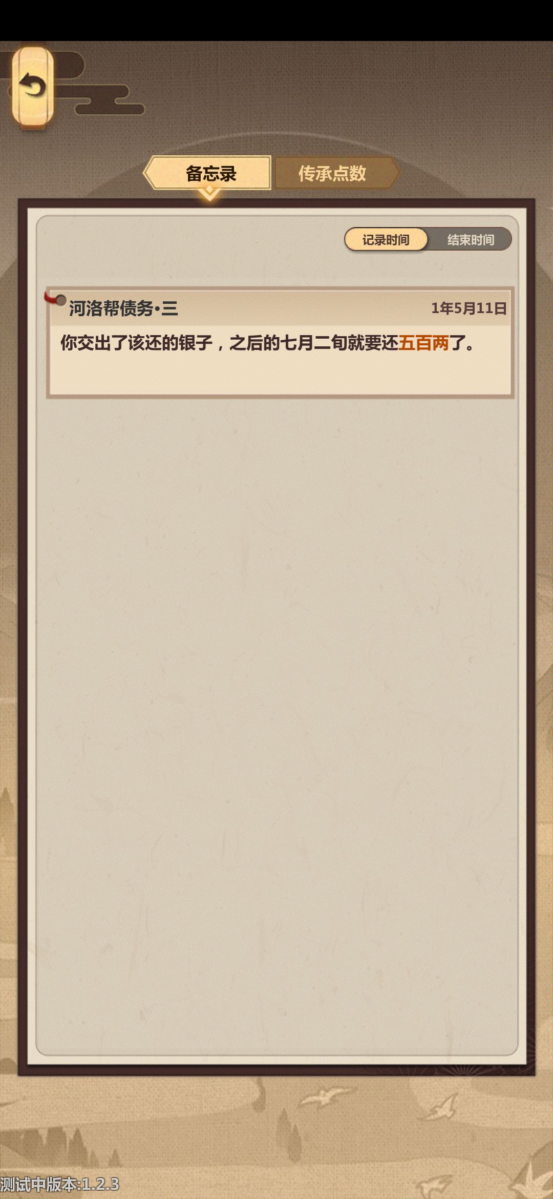 7月的时候去门口没找到河洛的人(也许是被黄河三圣赶走了?),现在都八月了那就不用还钱了吧