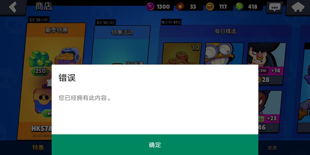 如图。夏季特惠购买了一次没到账,后面再点击就是已拥有。安卓系统。