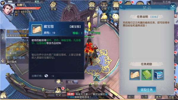 每日修炼一共有20个小任务组成,每个小任务完成后都能获得银两,虽然不多但20次加起来的话就比较客观了。另外20次完成后会获得宝图,挖宝也能获得不少的银两,不过具体数量比较看脸,因为挖宝除了产出银两外,还有很多实用的道具。
