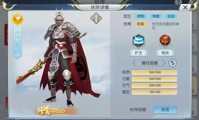 护主-神圣领域:出战时,增加主角防御、全攻击、生命值,技能等级越高效果越强! 圣级伙伴独有的防御、攻击和生命全加成被动技能,实现自身实力的大幅度提升!