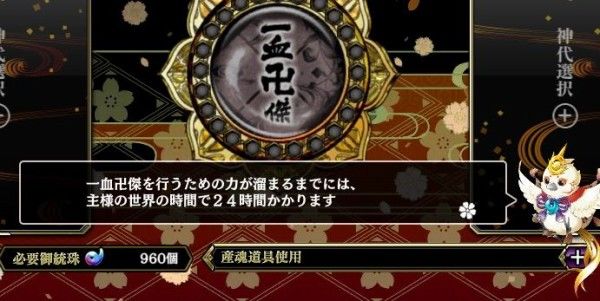 ▼“ 一血万杰”文字周围的“◯”将在24小时后填满。顺便说一下,如果在这个“〇”积累未满的状态下使用御统珠,可以节约相应百分比的御统珠。