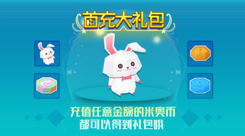 活动期间,氪金任意金额都可以获得中秋礼包一份,里面有大量月饼和可爱的兔子手持。
