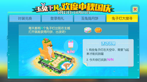 在米奥空间中有几盏被藏了起来的兔子灯,找到兔子灯就能获得月饼啦,记得每天都来找找看哦。