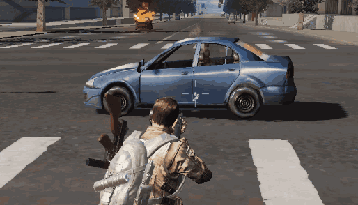 对轿车进行扫射,打出了大概31发子弹过后,轿车发生爆炸。