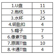 第一名:变色水杯 第二名:抱枕 第三名:U盘