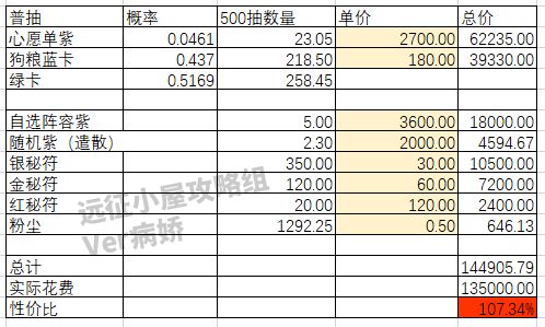 计算500次普抽的表格如下