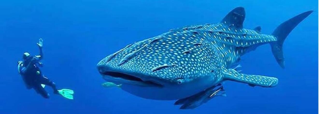 世界上最大的鱼是鲸鲨。据资料记载捕获到最大的鲸鲨体长达20米、重40吨。台湾1987年捕获一条鲸鲨体长20米、重34吨,真可谓厐然大物。鲸鲨不是鲸,是鲨鱼类中个体最大的一种,体形厐大,每侧具2行纵行皮嵴,体背青褐色或灰褐色,具有很多黄色斑点及横纹。头平扁而宽,口巨大与头几乎等宽,上下颌有皮褶,布满了细小牙齿,眼小,鳃孔宽大,尾分叉、不对称,尾柄细小。鲨鱼几乎都是肉食性鱼类,口大齿利,只有鲸鲨和姥鲨以浮游生物为食。鲸鲨广泛分布于印度洋、太平洋和大西洋各温热带海区。我国各沿海均有分布,为大洋性上层鱼类,有时也游到近海索饵,好群集,游动缓慢,常静息水面晒太阳。鲸鲨性情温和,无甚危害。有趣的是,这么个厐然大物,它竞然是以最小的浮游生物为食,属于滤食性鱼类。即算呑食鱼类也是些沙丁鱼、鲔、鲣等小型鱼类。鲸鲨的食量很大,主要靠鳃鲃过滤食物。它的鳃弓具有角质鳃鲃,鳃鲃分成许多小枝,交叉结成海绵状的“过滤器”。它一张开大口,海水与小生物便一起涌进口中,然后它闭上口,水就从鳃鲃缝隙中排出,而小生物就留在口中成了它的食物。鲸鲨的牙齿细小而稠密,不像噬人鲨(大白鲨)等鲨鱼那样具有锋利的锯齿。鲸鲨科鲸鲨属的鲨鱼。鲸鲨仅1科1属1种。身体庞大,全长可达20米,是世界上最大的鱼类。体表散布淡色斑点与纵横交错的淡色带,有如棋盘。鼻孔位于上唇的两侧,出现于口内。牙多而细小,排成多行。