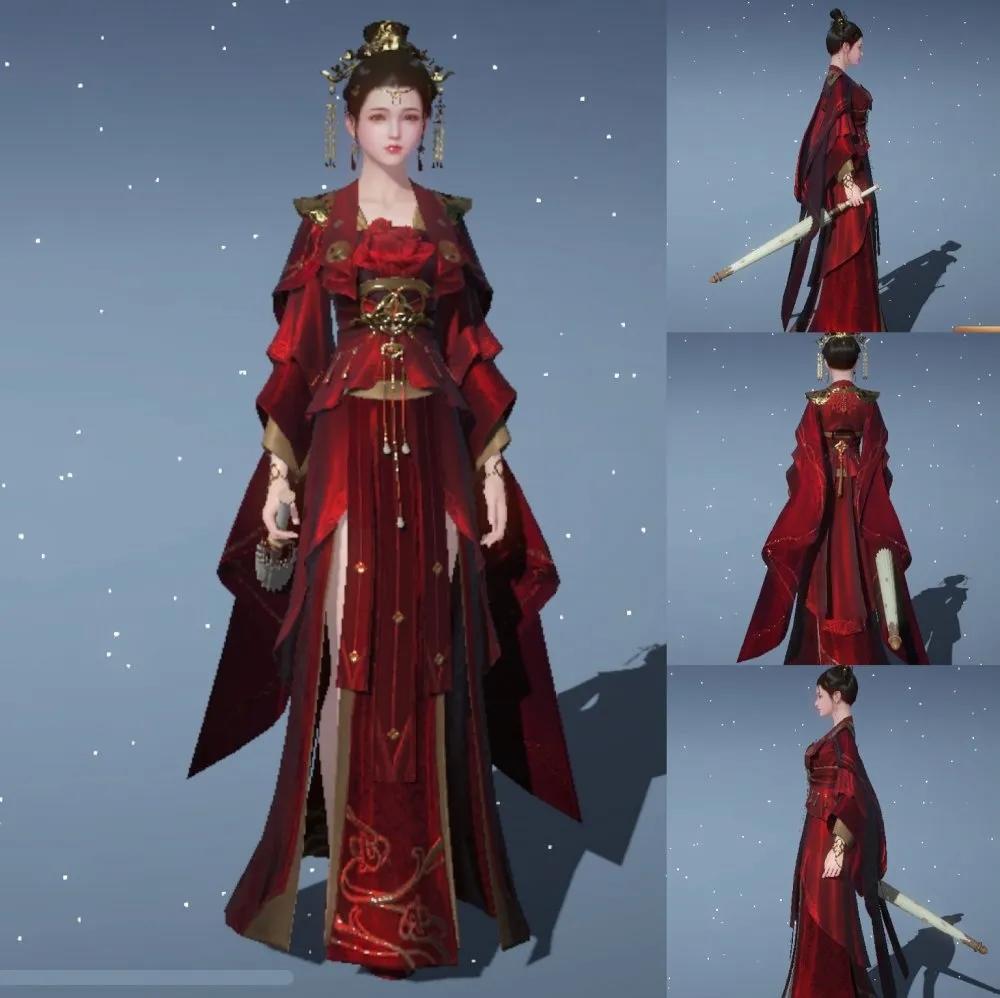 以红色为主的华服。翠华香重玉炉添,双凤楼头晓日暹。扇掩红鸾金殿悄,一声清跸卷珠帘。作为天刀首款嫁衣,红銮殿落落大方、细节满分,你是否也想穿上它去见那个命定之人呢?