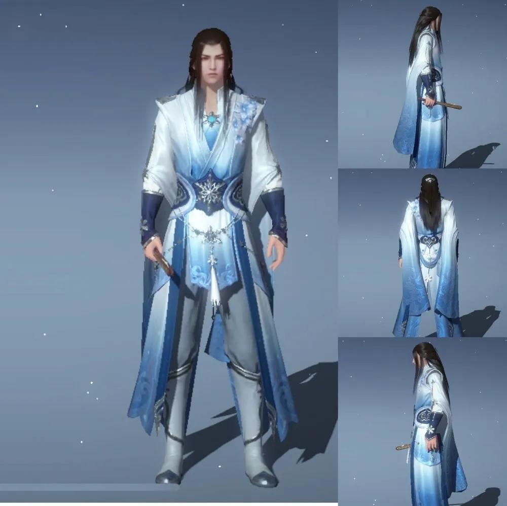 以淡蓝色为主,冰与雪的交融晶莹且柔美,幻化成了一套若冰若雪的时装。可平空凝结出冰雪结晶,简直就是美不胜收。