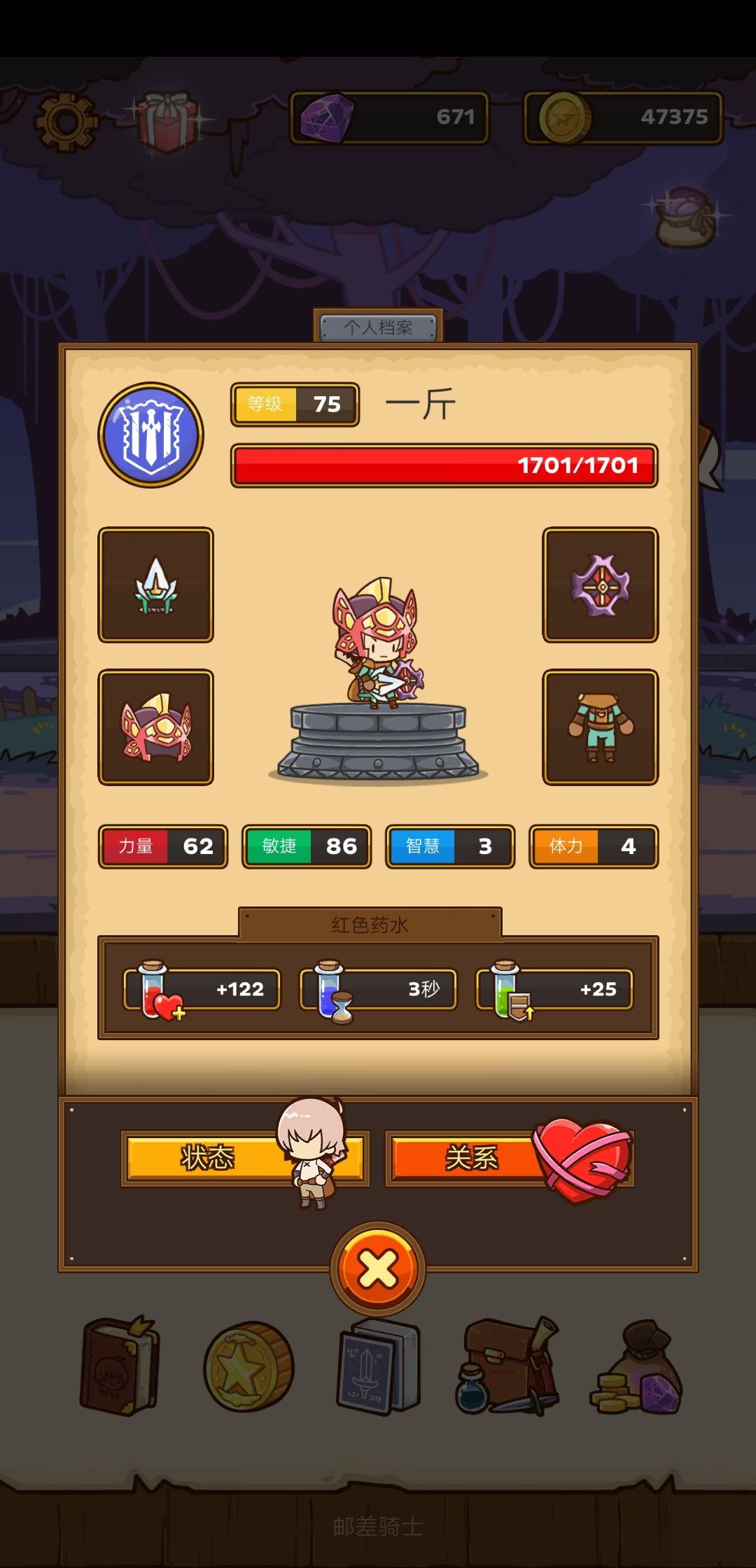 各位大佬们也不用按照我的加点方法,你们可以自己探索一下,要想闪避回血就加敏捷,要想推图凶猛就加力量,要想升级迅速就加智力,要想稳妥起见就加血量,总之玩法多样,没必要局限于同一种玩法,要用于探索噢٩(๑˃́ꇴ˂̀๑)
