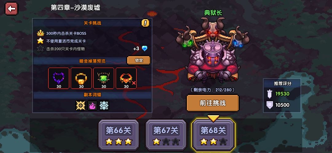 电池有限,所以效率第一,在选关的时候有个锁定,这样可以使这关只掉落一种装备