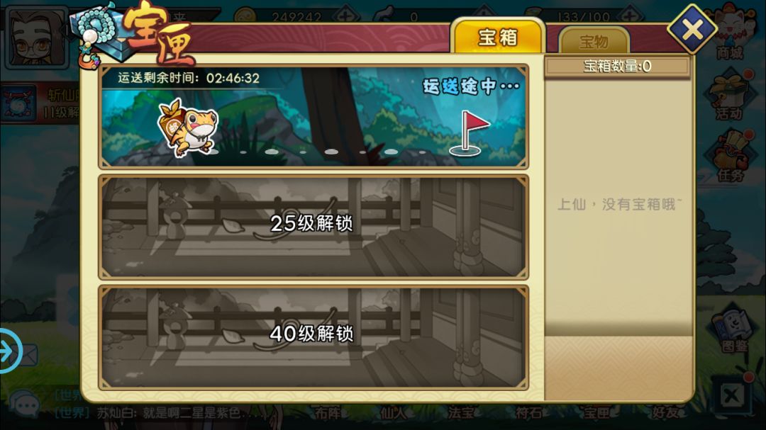 除此之外,游戏还有装备系统、符石系统以及宝匣系统,前两者是相辅相成的,高品质的装备会有孔,而符石就可以放入其中,提高装备的数值。宝匣则相当于一个挂机获取装备的地方,会根据等级解锁,越高收益越好。