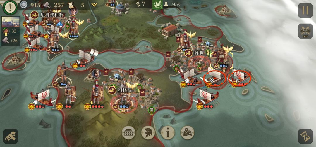 2.利用绿圈城市的三级兵营对部队进行补充(如果阿格里帕登陆成功)加快打死阿格里帕和它的附庸兵团
