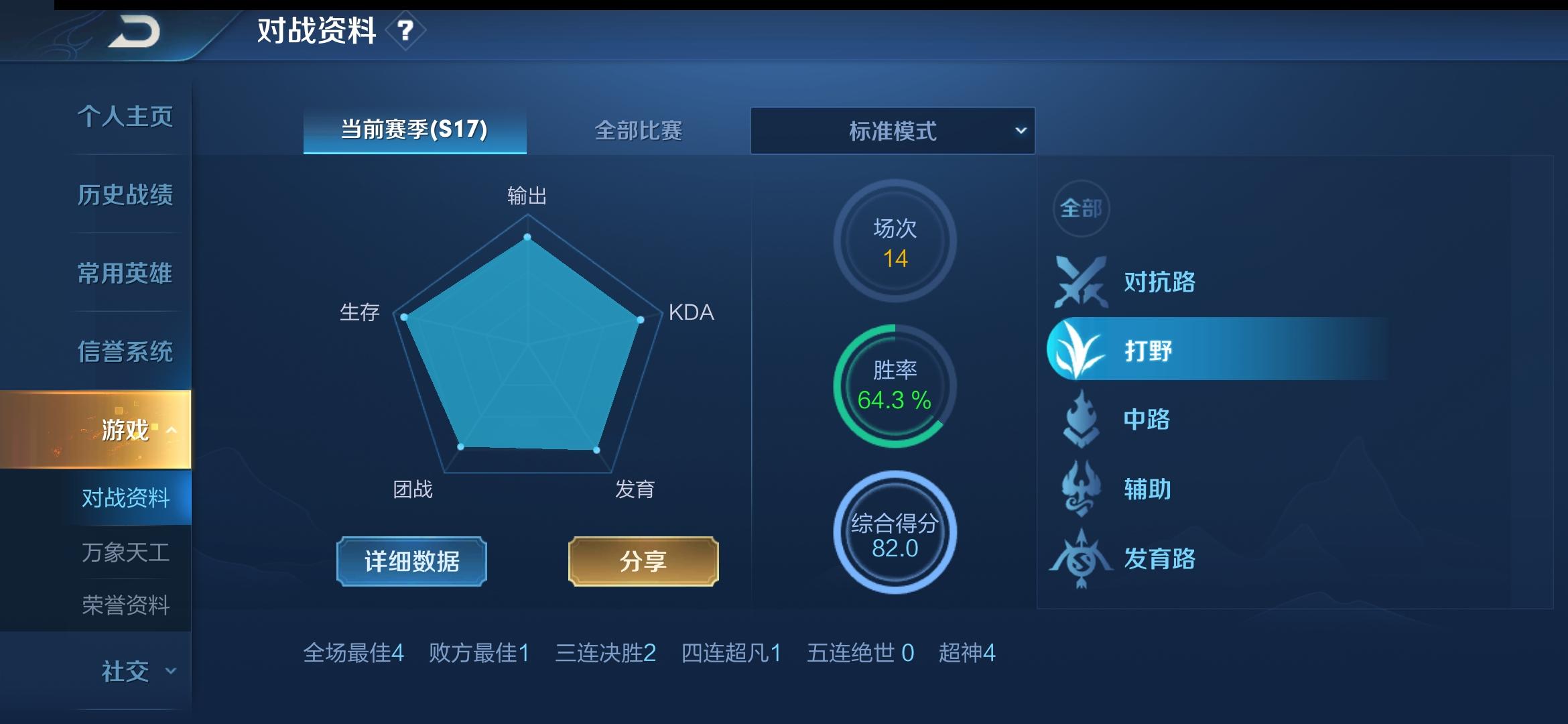 下面我的战绩,比不上某些大神是肯定的,全是杨戬的数据