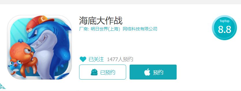1、点击《海底大作战》专区上方的预约按钮,即可完成预约。