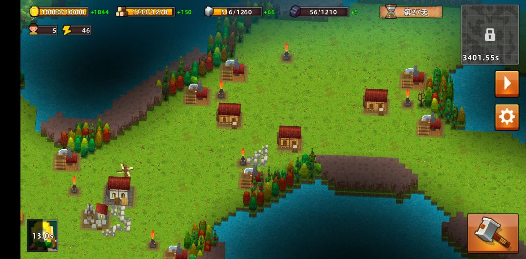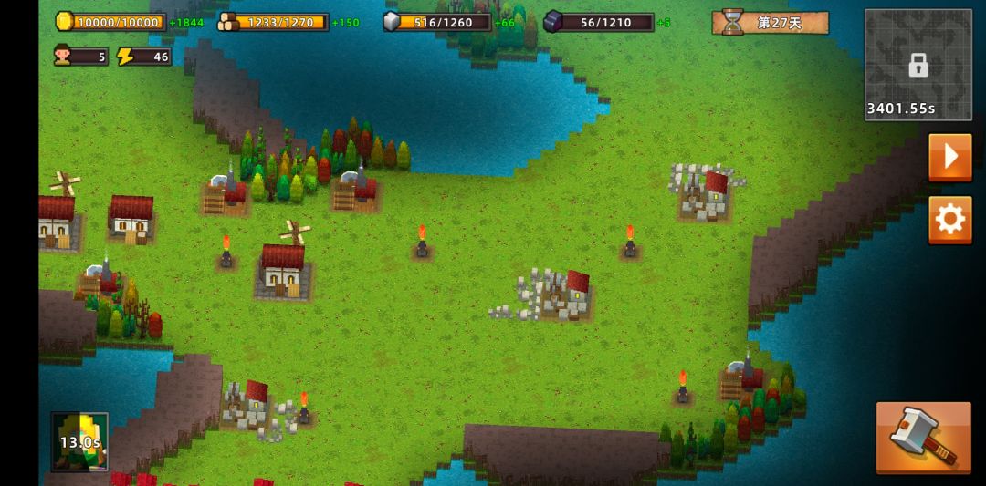 这样堵好之后北边的广阔土地就收入囊中了,这些区域的资源大概统计了一下,木材约20处,石头约10处。玩的时候有些资源的也没有占,因为实在太多了。全图的资源更丰富。另外,空军比较多,记得带狙击塔。PS,lcc果然是小可爱呀,嘻嘻(♡˙︶˙♡)。