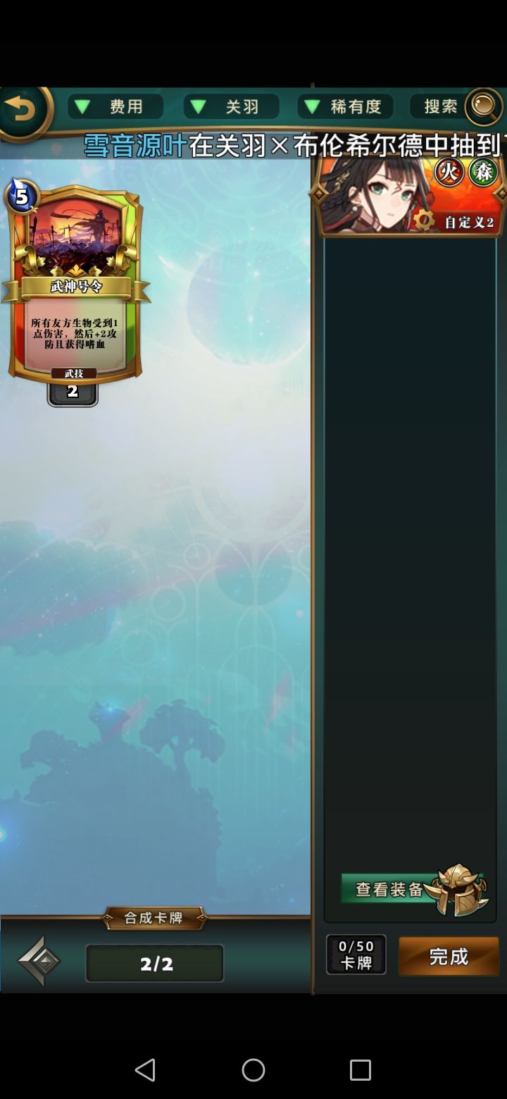 轮到我自己做关羽任务,咱浏览一下牌库,嗯,这套牌怕是没戏了……硬着头皮组套关羽未完成,在天梯一波连败,心灰意冷。相信许多贫民和新手也有过看着活动奖励望洋兴叹的经历,甚至甩锅给官方。