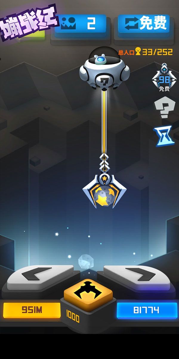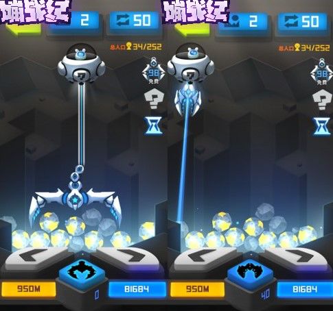 第三种则是吸力夹,钩一次消耗40蓝星,这个就非常稳定,只要激光扫到的那个石头,必定会抓取。一般吸力夹用于吸取卡住的蛋效果特别好。