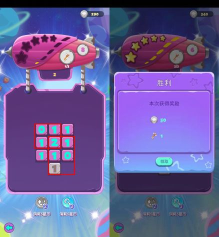 《萌兽贝贝》星核玩法通用攻略,以1-3举例说明,首先一定要先仔细观察格子上的数字,他代表的是该数字九宫内的钥匙数量。