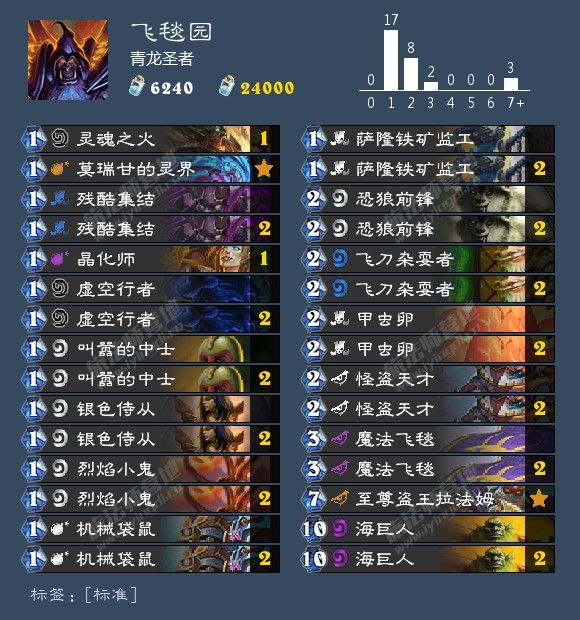 这套是原版龙法,我自己改良是去掉7费星术师换2个130,星术师过于笨重而且没法护脸,大部分时间面对中速快攻都是废卡。
