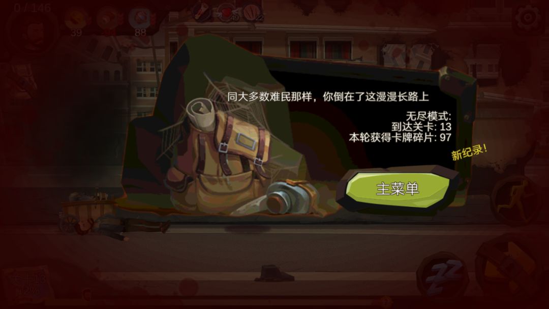 本人用乞丐坚持到了第13关,本来想的是见人就跪,跪到后面第10波开始路人开始减少,几乎一直在战斗,建议多存点永久保质的食物,因为后面游戏进度会加快,饱食和水分掉的巨快,食物收益技能必须要点,建议在第10关前做出4级武器,本人是饿死的,后面几乎走两步就要掉20的饱食度和水分,真的超变态