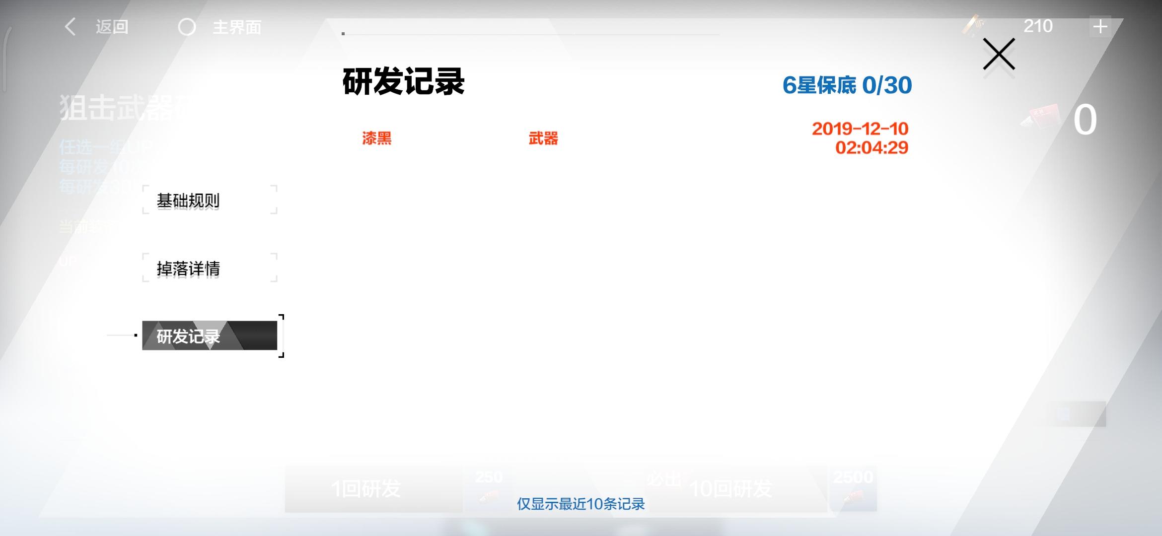 然后狙击池准备抽武器,考虑暗能和燃烬,因为大号燃烬六星武出了(说这个都是泪,拼命肝图+氪了发68武器十连才攒够保底),就寻思小号狙击暗能。下面,上图。
