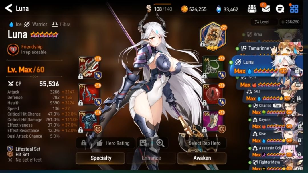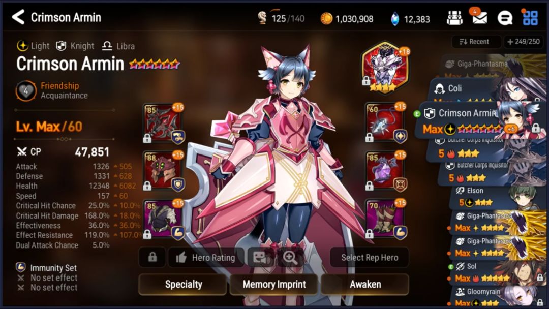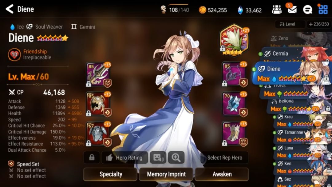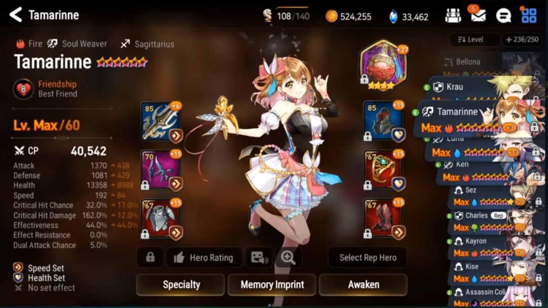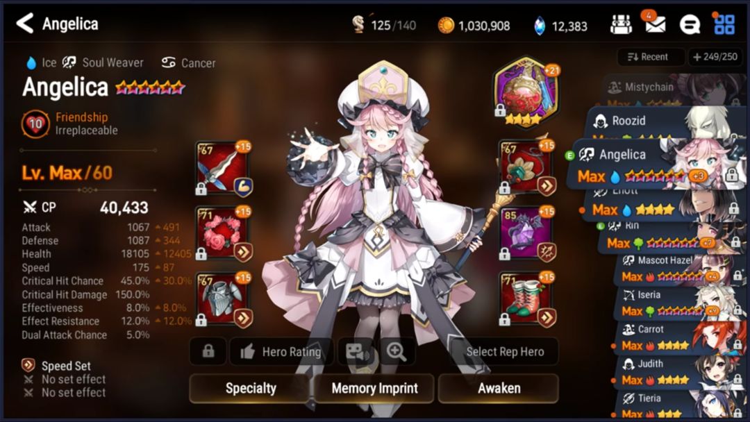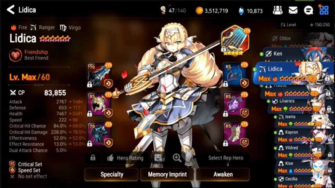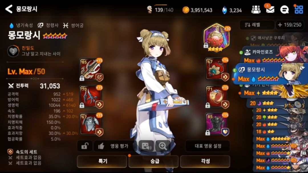 (还真有用蒙莫朗西的Orz,而且还是未觉醒的!被打脸了惹。。。他这阵容还有一个是圣女,具体属性和上面英文的圣女属性极为相似,神器也同为孤挺花)
