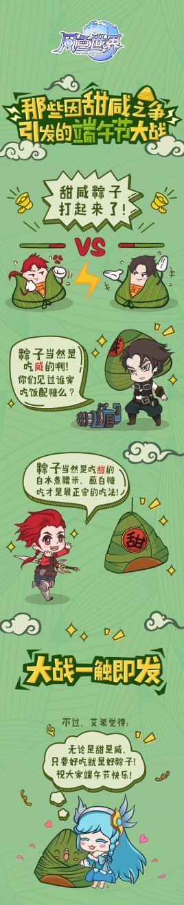 这不在风色世界里的小伙伴也是为了粽子口味之争,愤愤不平,一场“甜咸之争”大战即将开启