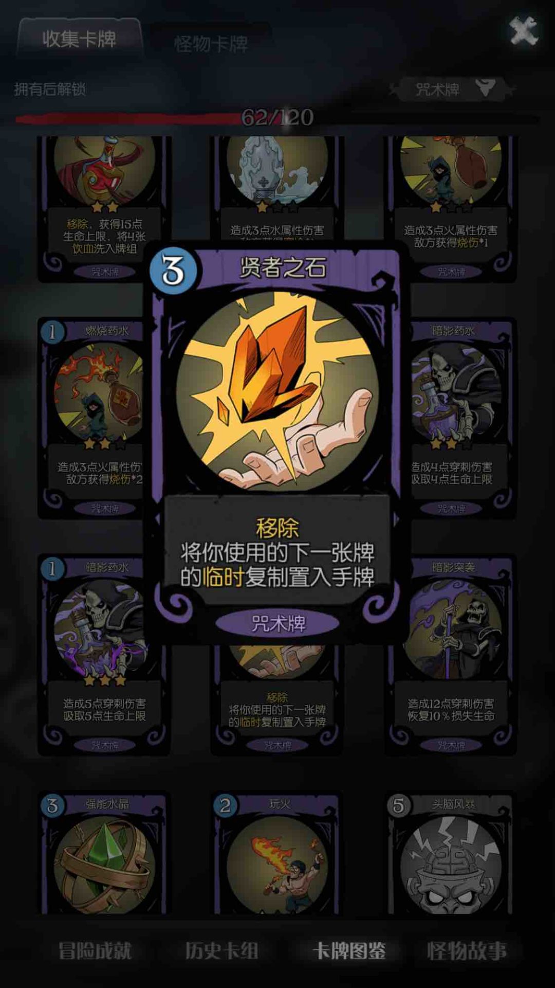初始卡片,稳定的穿刺和叠上限,不同于上面的血瓶,不会移除,且自身蓝耗低,所以在血瓶一波爆发上限提升后它是支撑后续作战的主力,由于带有“药水”条词,配合新出的药水buff牌会有不错的收益√(下文会提及)