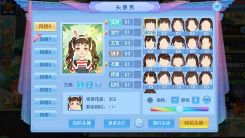头像秀是每个玩家的魅力门面,也是整体装扮的第一步,聊天会话、发布好友秀都会实时显示。如何每一天都打扮得美美的出门呢?单击人物头像,进入头像秀界面,或动感或Q版八大风格,头发、头饰、眼镜、嘴巴、衣服、背景、边框七大选项,尽情选择、任意搭配,助你打造更个性形象。如果搭配不过来,还可以选择随机生成的头像。