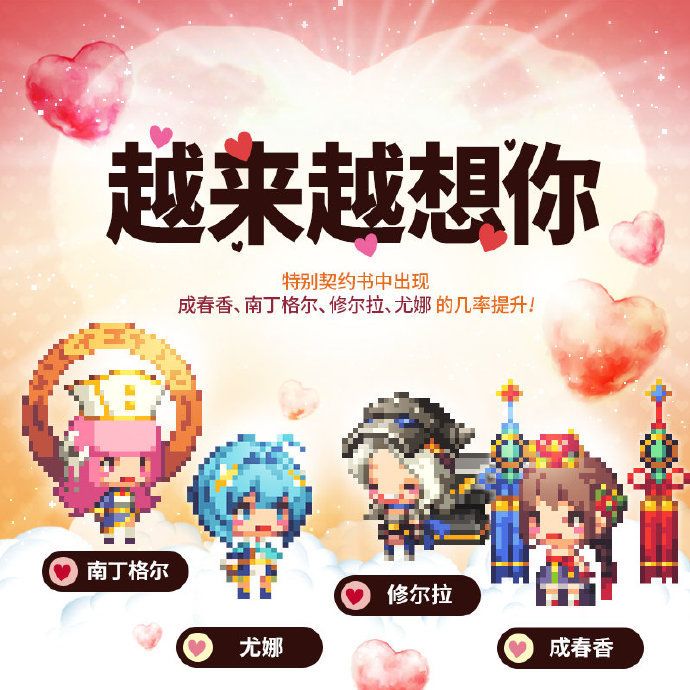 内容:活动期间特别契约书中出现成春香、南丁格尔、修尔拉、尤娜的几率提升。