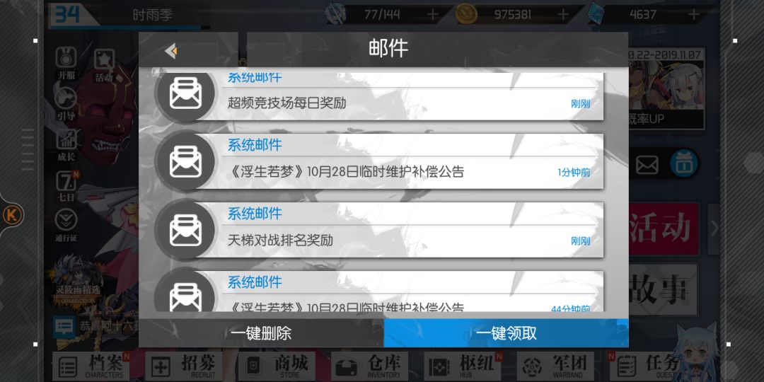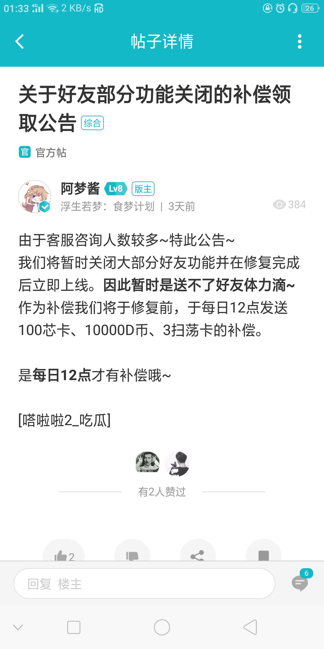 就是这个补偿邮件,因为怕体力溢出所以没领,然后刚刚炸服之后现在能上线了,却发现好友功能补偿的邮件没有了
