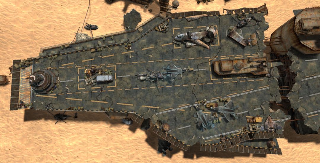 航母战场后段是空旷而狭小的地形,后段的设计让这张地图充满混乱。只要你进入这个战场,你的四面八方都有可能存在敌人,这里没有一寸安全的空间,所以拿起你的武器,不停的战斗吧!