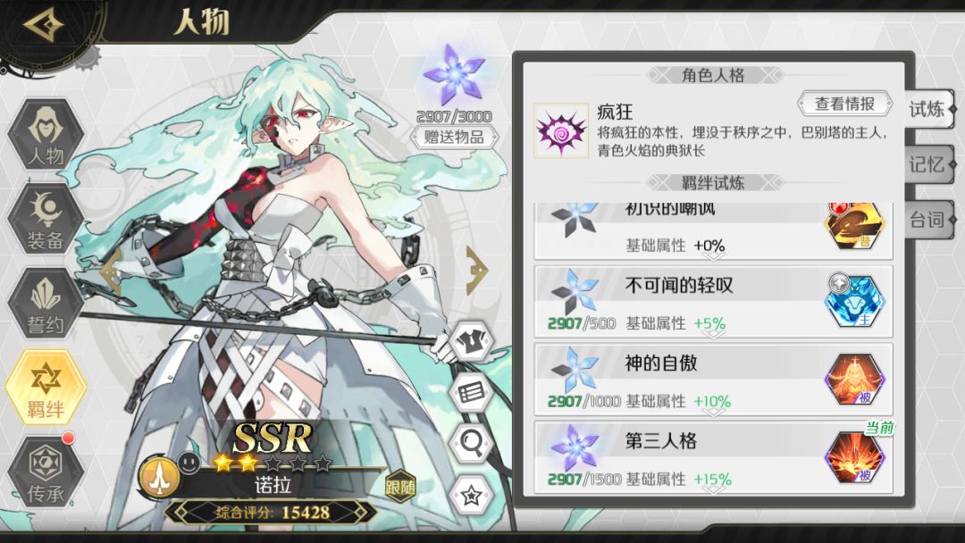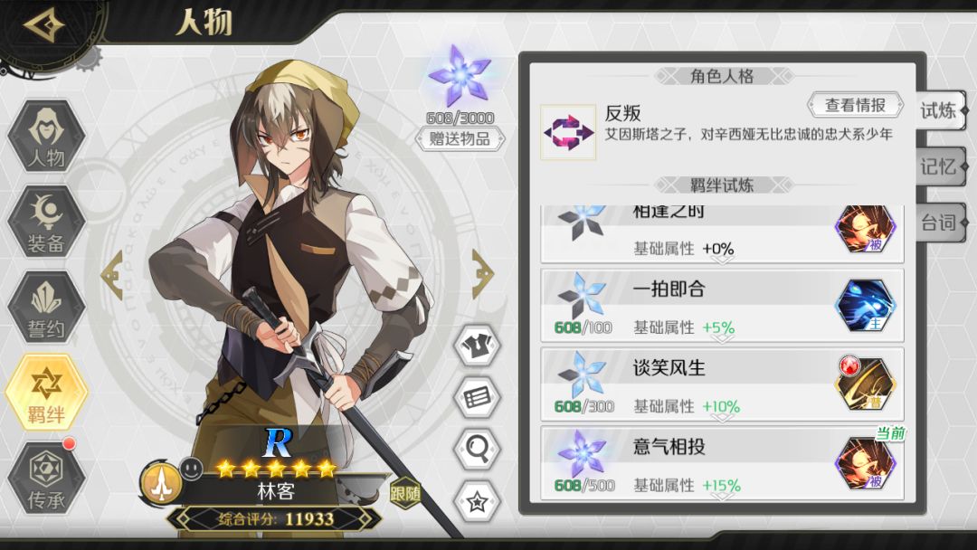 开锁条件:升5星时候有多余重复卡会提示要不要换羁绊点选换就会解锁,然后攒点数换想要工具人学技能就行了,SR一张要3000点羁绊点,SSR一张要15000点羁绊点,根据自身情况来换
