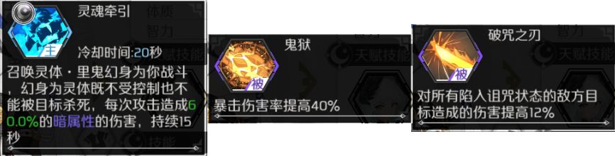 灵魂牵引(核心输出),鬼狱(可选被动),破咒之刃(可选被动)