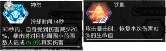 神怒(对群核心BUFF),饮血(提升生存力,可选被动)