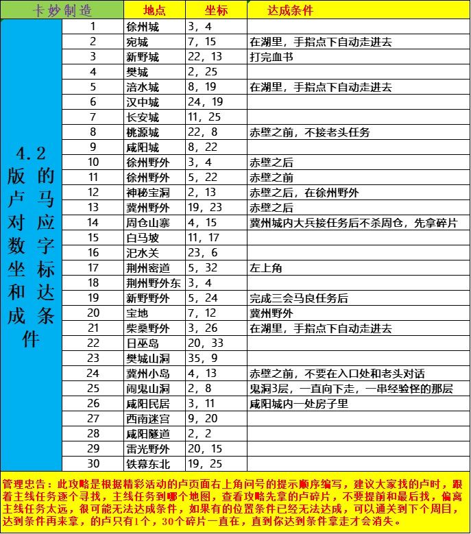 【攻略】4.2版本的卢马坐标图