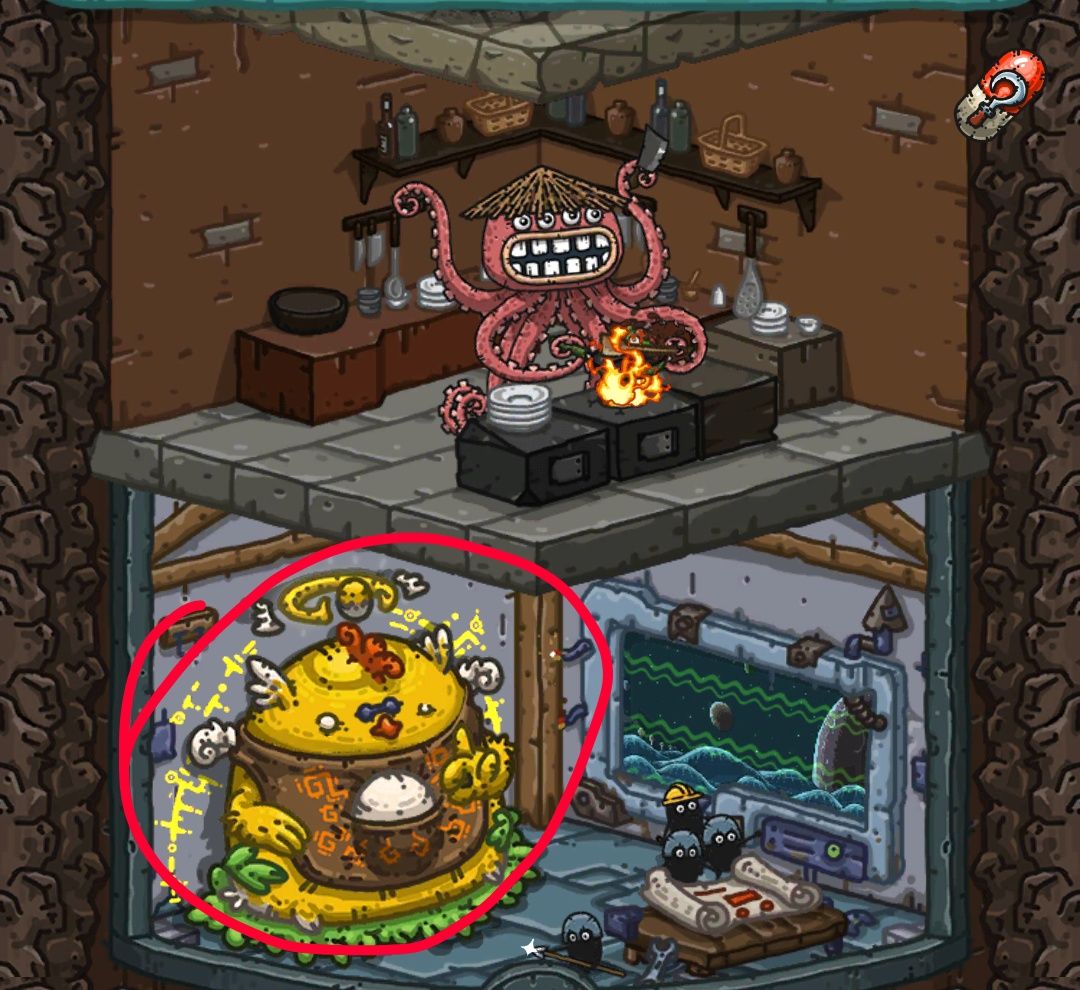 怪物蛋在母鸡界面可以看到(就是章鱼厨师下面那层)。