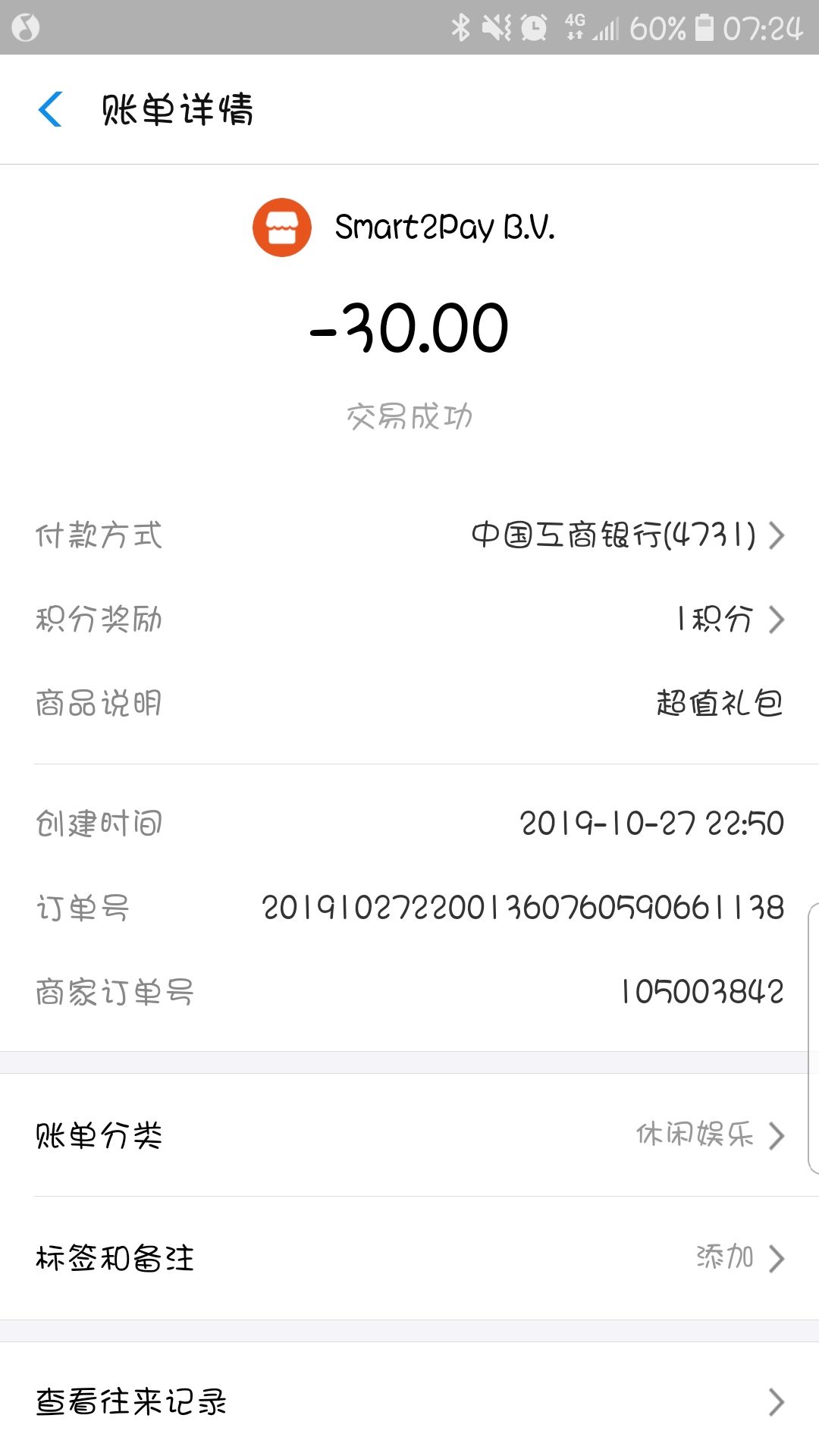 但是支付宝是有消费记录的 游戏里没有购买记录