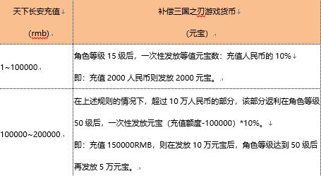 注:元宝补偿根据以上《三国之刃》角色等级要求发放,不发放也不清除首充奖励。