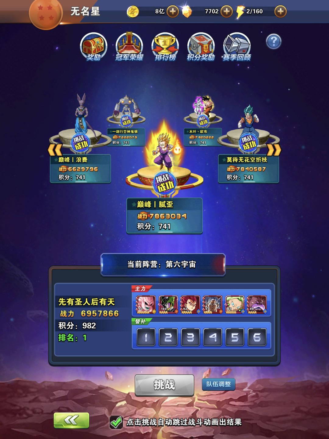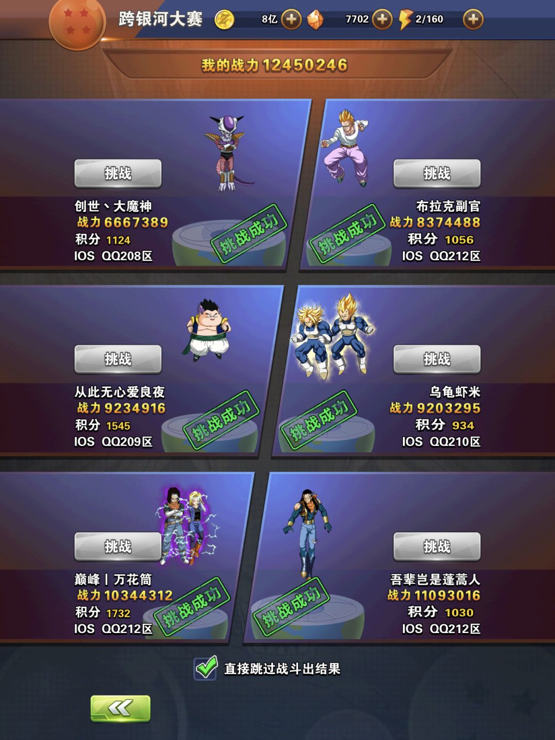 很明显按我这方式战力降了有四分之一,跨银河大赛在第一匹配到的对手都很弱。但一定要注意:蛇道的扫荡一定要在上战力之前,跨银河大赛也要在战力恢复之前进入对手界面。