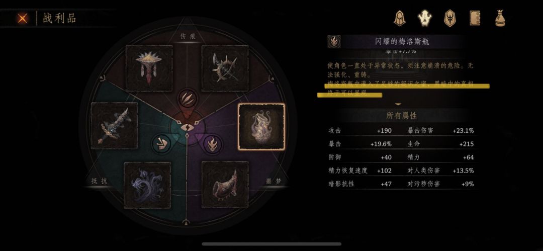 答:这个就牵涉到支线与主线的关系了,“温润的血肉”是小女孩的支线任务,完成支线团圆后会掉落,但如果你已经完成了第二章的主线,那么再去完成支线就不会掉“温润的血肉”了,会得到另一个装备“阿达米亚的庇护”。但“父爱”在前期可以说是神器的存在,地位要高于“阿达米亚的庇护”的,所以要记住先过支线再打主线,才是这个游戏的精髓。