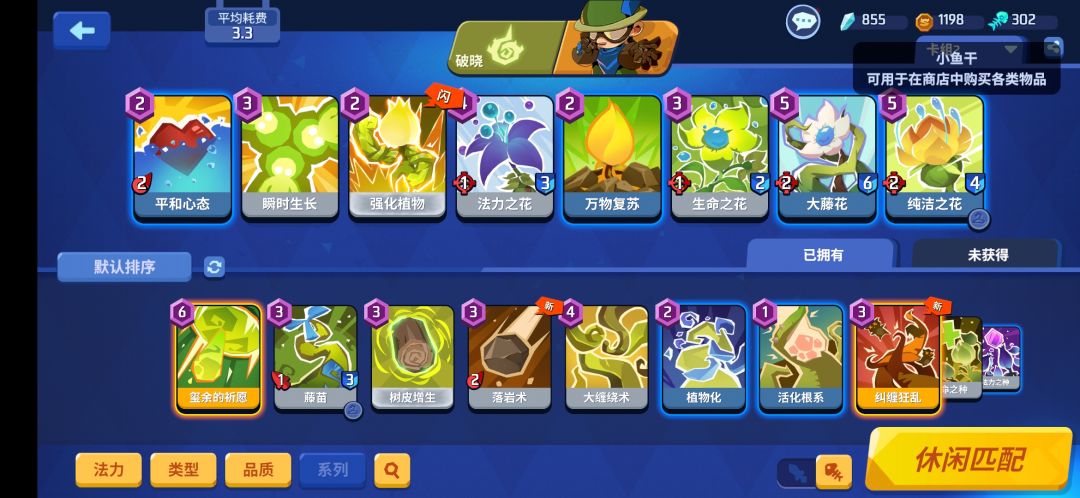克制战技流的破晓植物卡对非战技流只要将平和心态换成藤苗就行大藤花也可换成投石树(我没有这卡不知道更换效果如何)要点:1、换卡保守换到一张生命花或法力花(藤苗)2、遇到特殊效果,如冰冻核桃、太阳拳等指向性法术自身上去抗,保护植物3、预防穿透性法术或战技,谨防将植物排成一条线或太密4、及时给植物提身材,做到和对方换怪,必要时自身上去抗血5、排战线,集聚但别太密6、好好玩