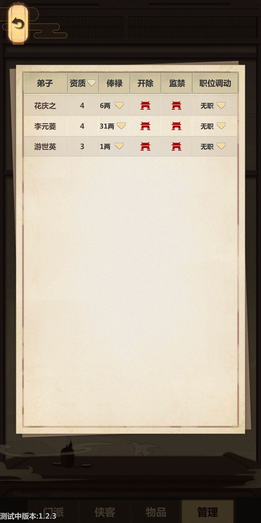 点开管理→弟子管理