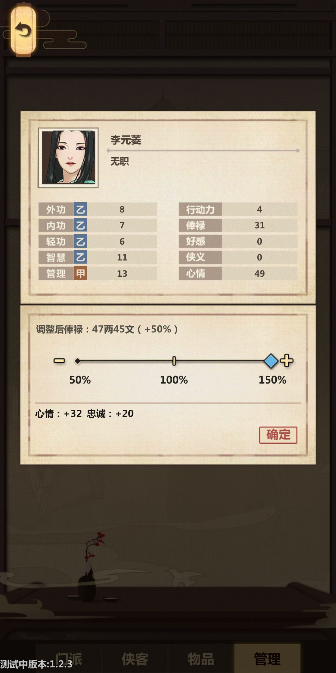 这里的心情和忠诚是即时计算的,但俸禄是每旬结算的!