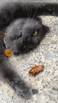 12有一网友表示!她家猫第一次看到蟑螂,就被吓晕了