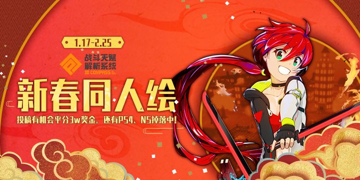 1.17-2.25,为#COMPASS游戏绘制新春贺图,就能平分3w奖金,还有PS4、NS、影拓数位板掉落中!