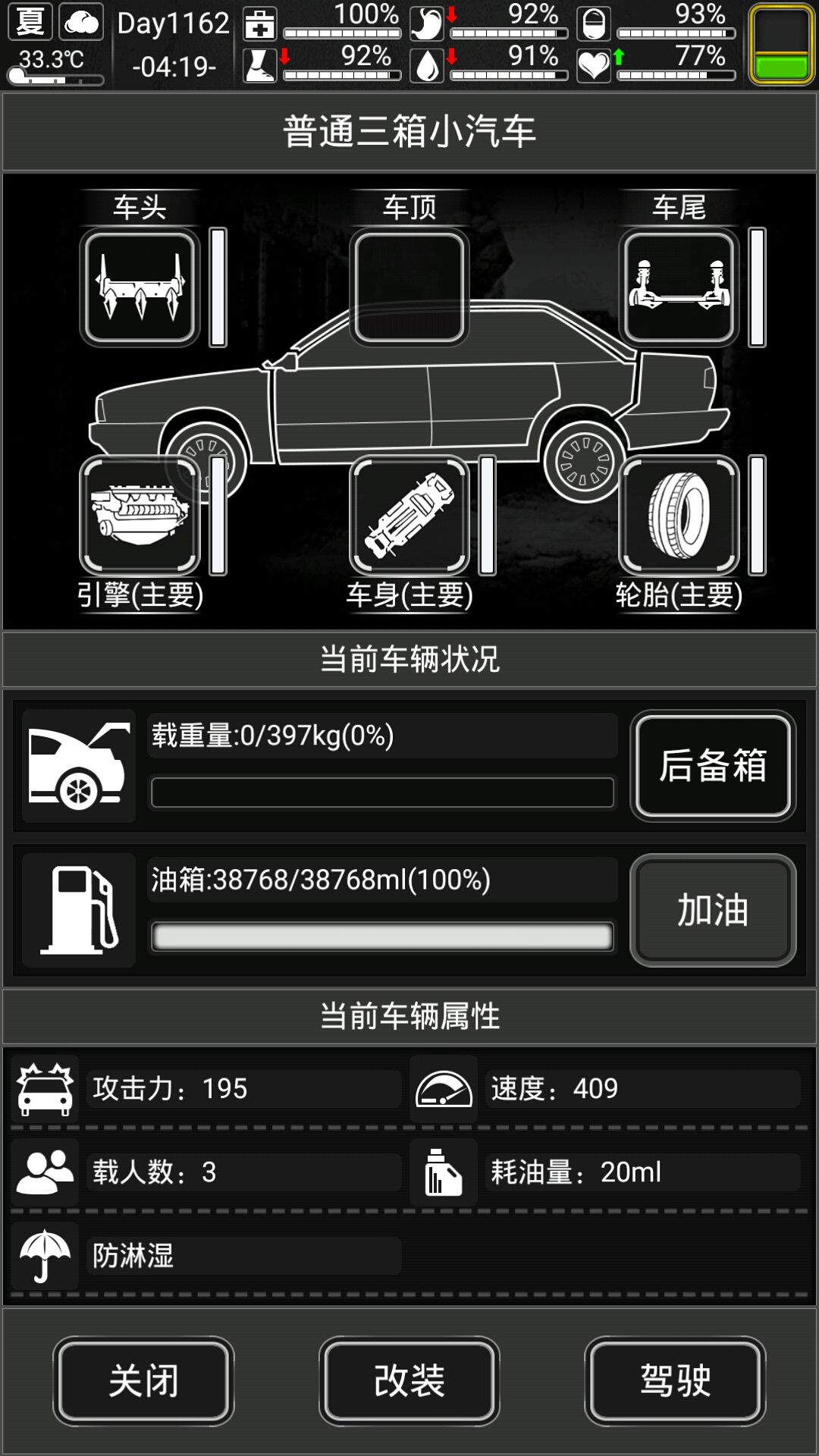 各种车辆的最高速度(无天赋的状况下)