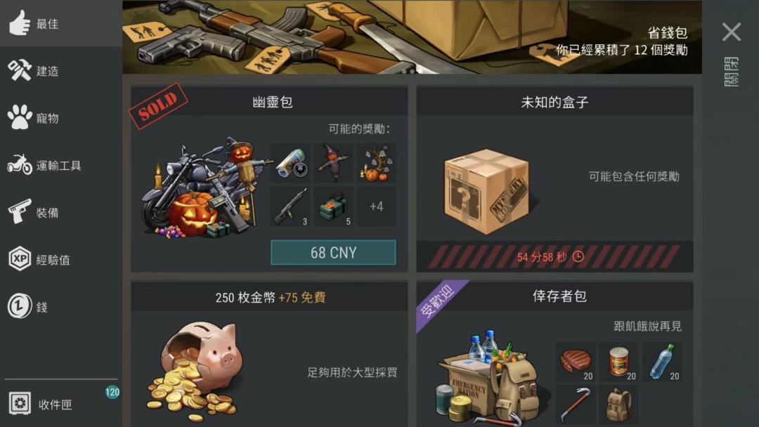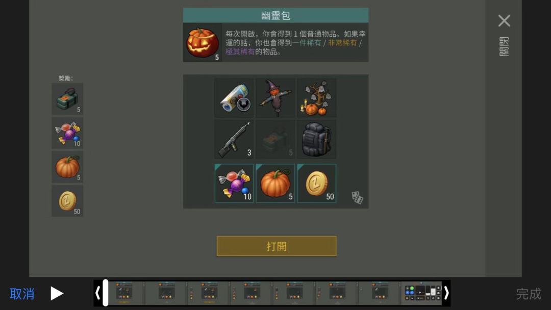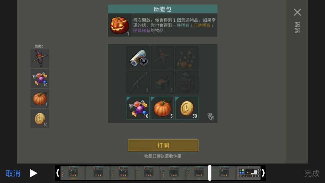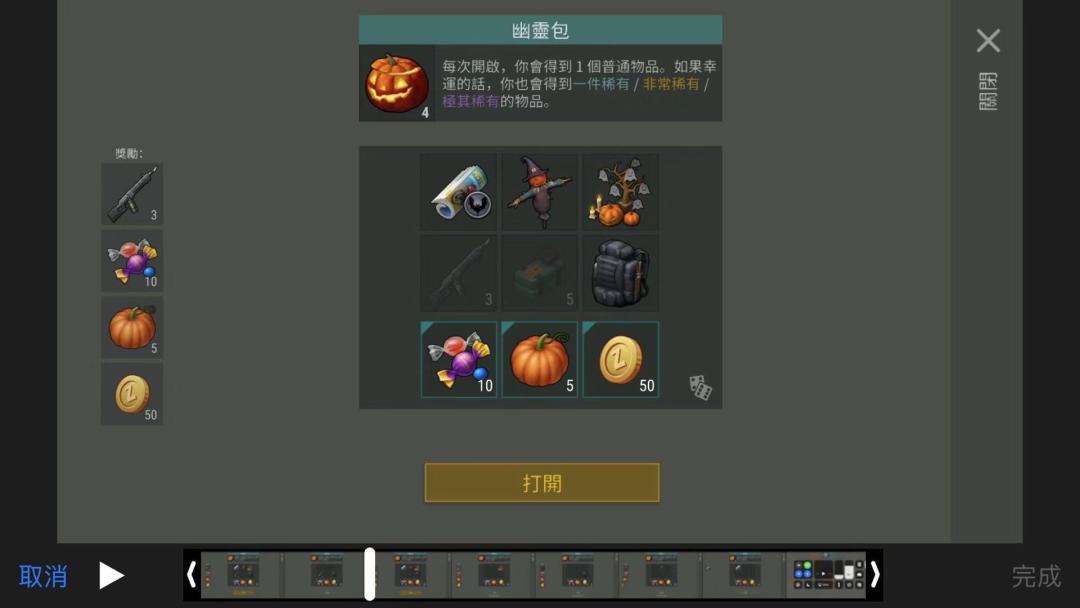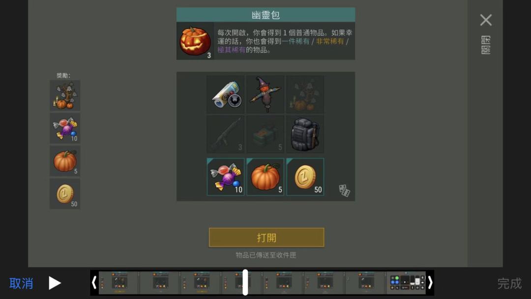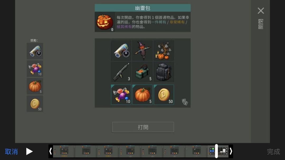 每包=10糖果+5南瓜+30金币+6随一(选中移出)